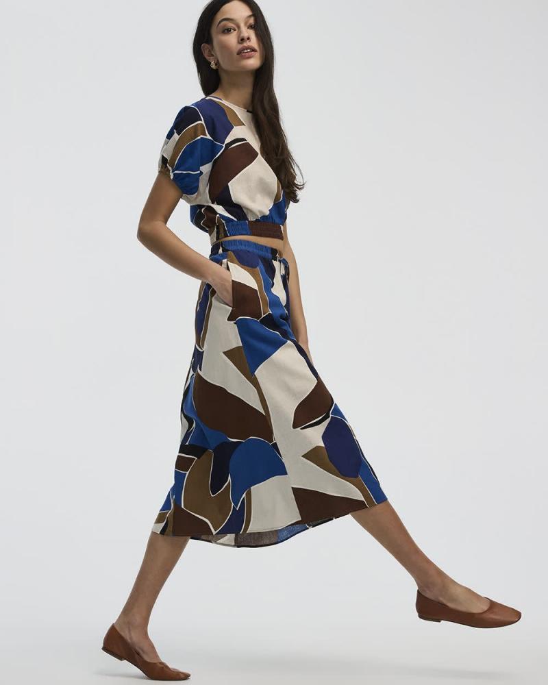 Super elegant, this linen and viscose midi skirt is a lovely piece to add to your wardrobe. Wear it with sneakers and a long-sleeve sweater or pair it with strappy sandals and a feminine cami. – Stretch linen blend- Lined- A-line silhouette- Pull-on high-rise- Elastic waistband with functional drawstring- Functional side seam pockets- Midi lengthItem No: 483491