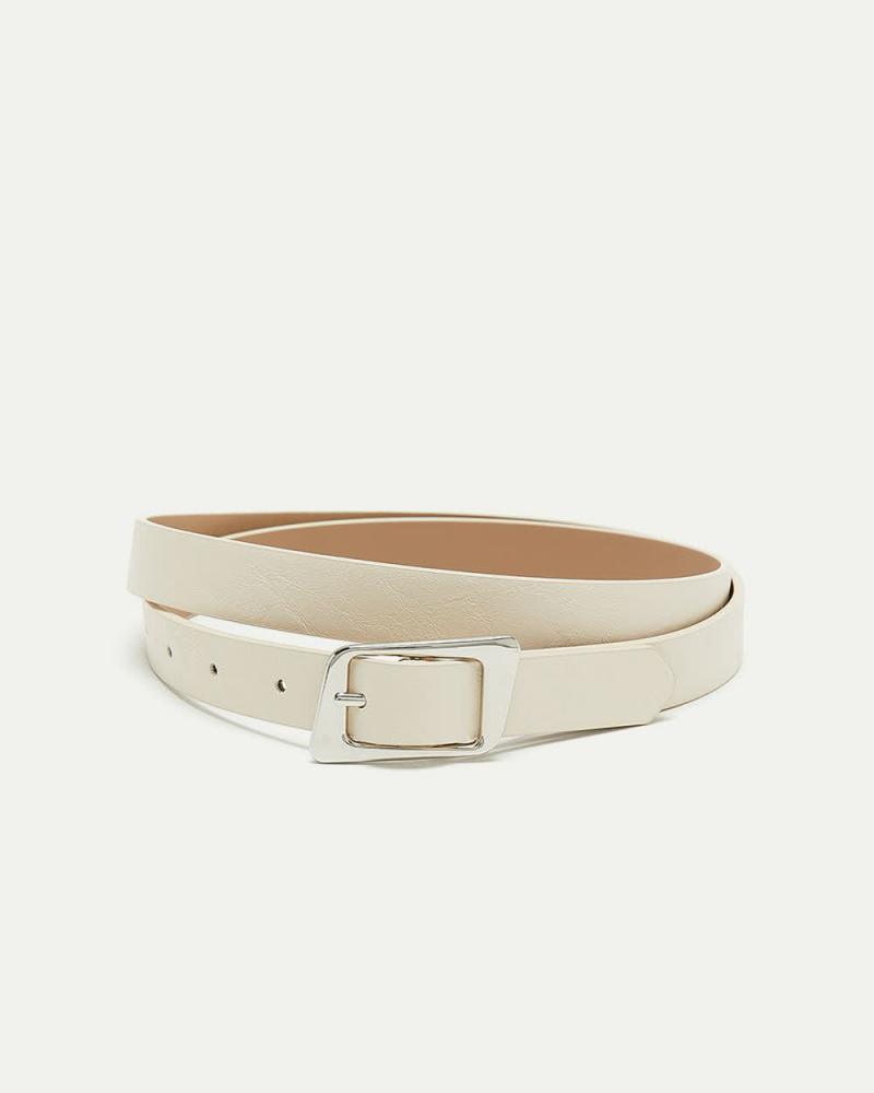 Reitmans | Accessories Skinny Faux Leather Belt with Angled Buckle Cream